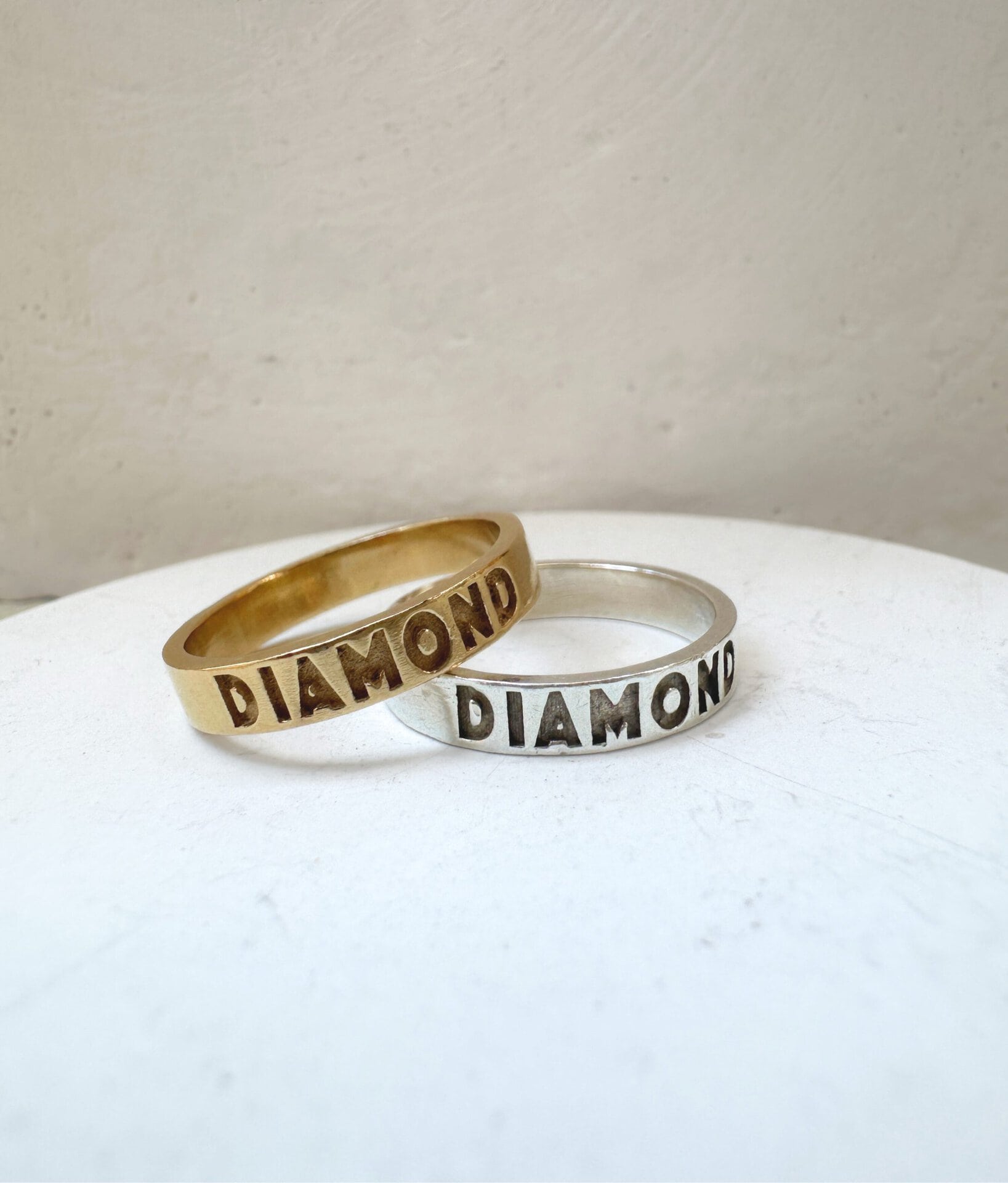 עשויה כסף סטרלינג 925, ללא ניקל, עם חריטה של המילה DIAMOND בגופן בולט ונוכח.