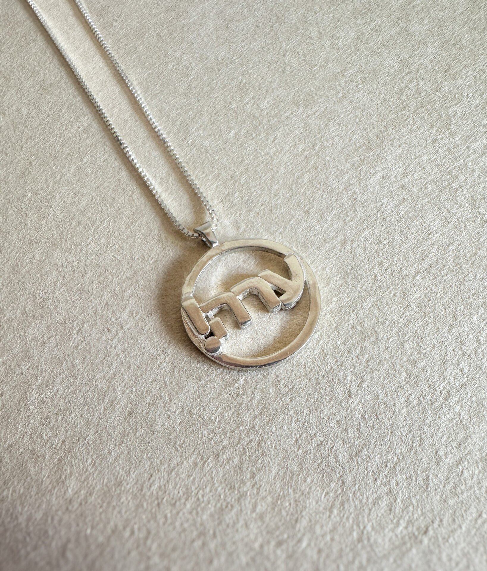 תליון עגול ופתוח, עשוי כסף סטרלינג 925, עם המילה ״ערה״ כחלק מהמבנה עצמו.