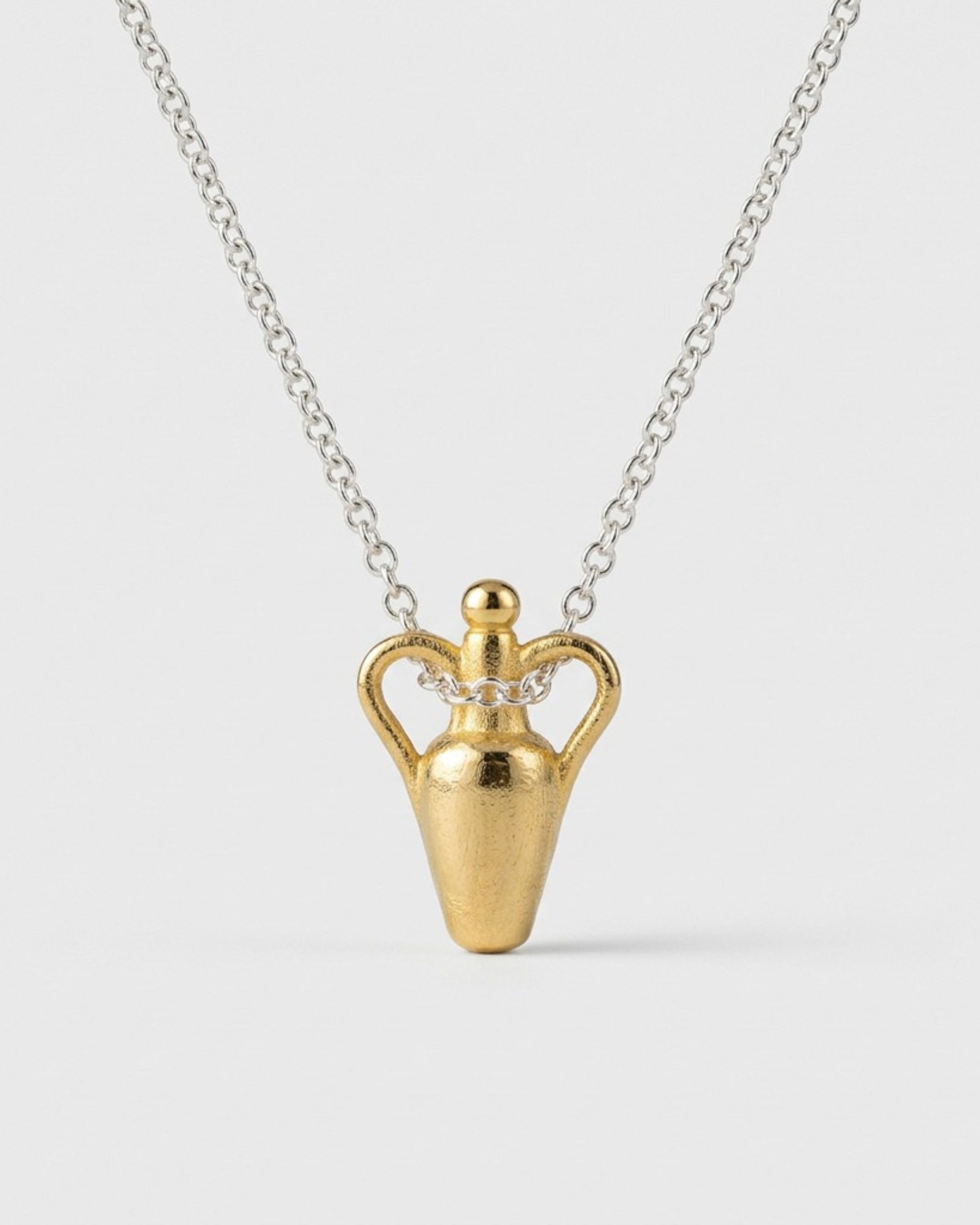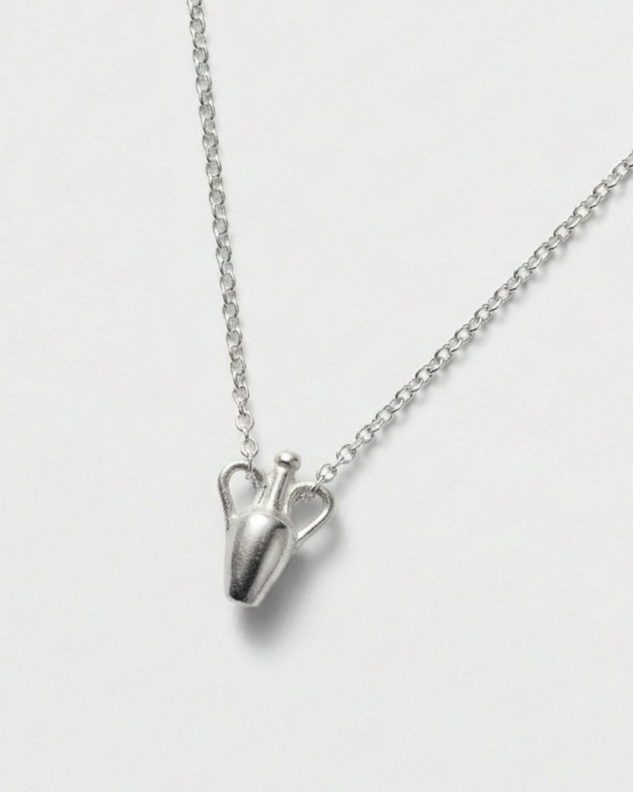 תמיד רציתי לפסל תכשיט שיחגוג את הצורה של הגוף הנשי, אבל בלי להיות בוטה או צפויה מדי. צורת הכד התלבשה לי בדיוק על הכוונה הזו. הקווים המעוגלים, הבסיס הצר והידיות- הכל מתחבר לצללית נשית, רכה אבל נטועה חזק באדמה. יצרתי את שרשרת FEMININE כדי שתהיה סוג של קמע אישי שקט. תכשיט שאת עונדת בבוקר ומזכיר לך את הכוח שלך, גם בימים הכי עמוסים. יש בו משהו שמדבר על הכלה, על יציבות ועל נוכחות שקטה. השרשרת הזו היא חלק מקולקציית "סימני דרך" (Milestones), ומיועדת להיות תזכורת יומיומית שתוכלי לשאת קרוב לגוף.